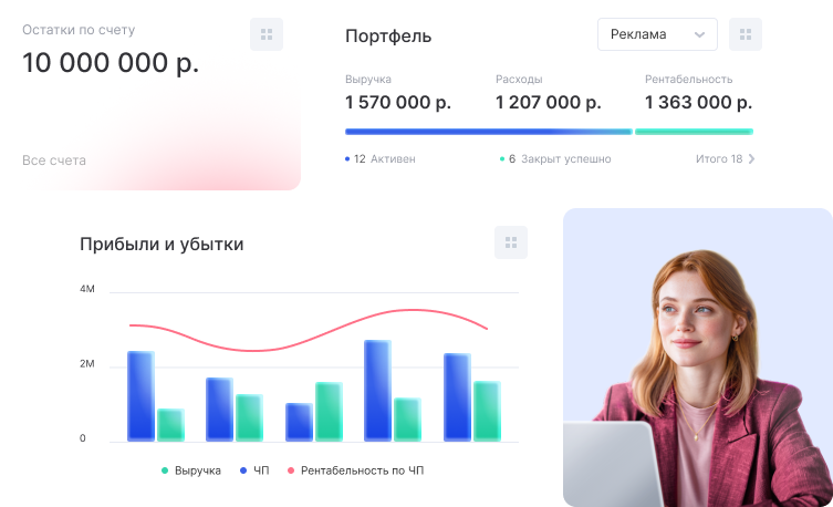 Но главное — это единая платформа для управления бизнесом для собственника. В Аспро.Cloud можно в два клика собрать информативный панель мониторинга (дашборд) о работе каждого отдела и получать всю необходимую информацию в реальном времени.