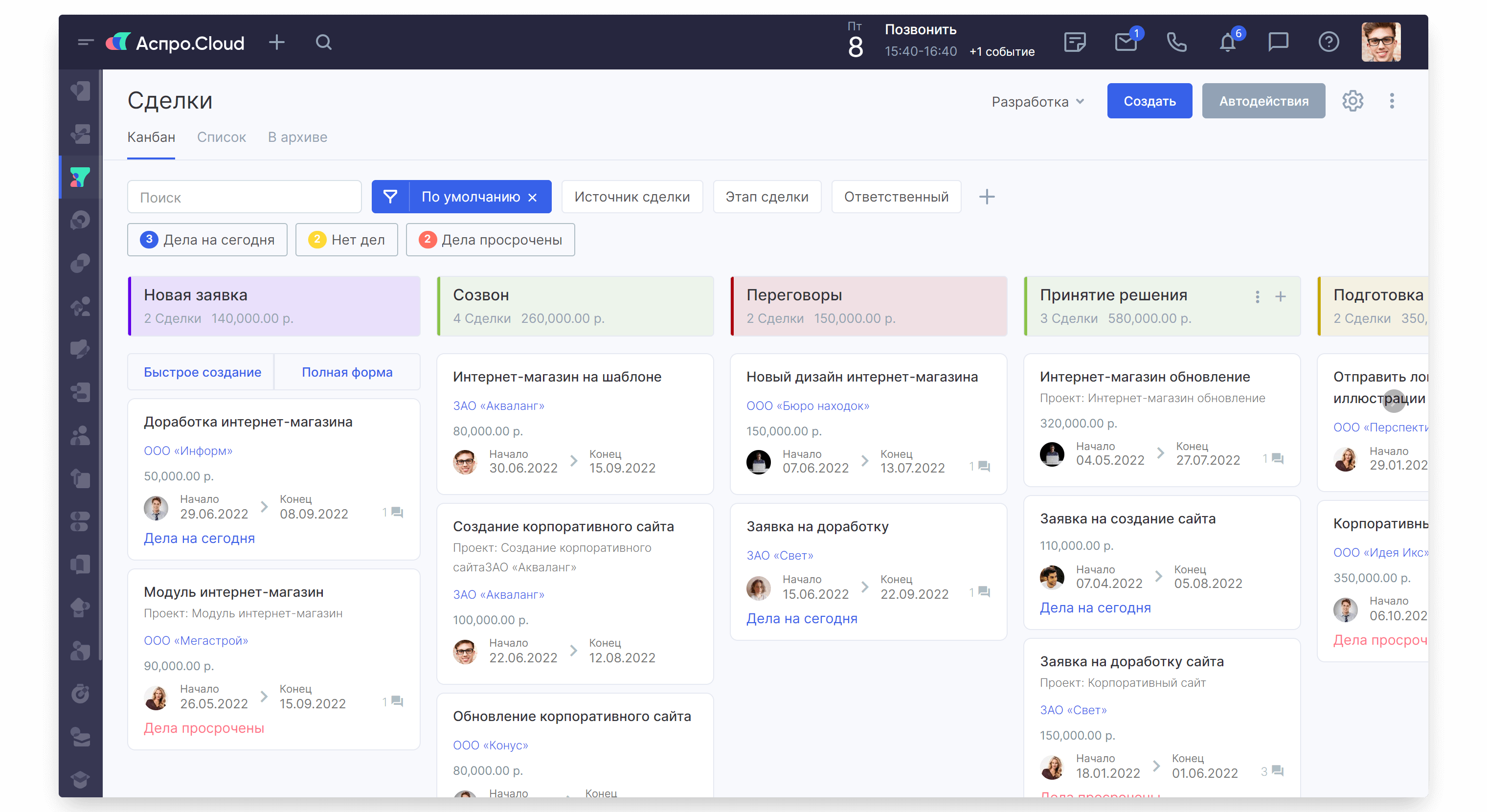Это станет настоящим личным помощником, который будет направлять ваших менеджеров на каждом этапе продаж. Они вовремя позвонят клиенту, отправят коммерческое предложение, будут знать, как ответить на возражения и что предложить в случае отказа.