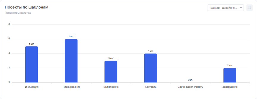 В настройках можно также выбрать сам шаблон, тип данных и задать фильтры для проектов. Виджет доступен на всех платных тарифах.