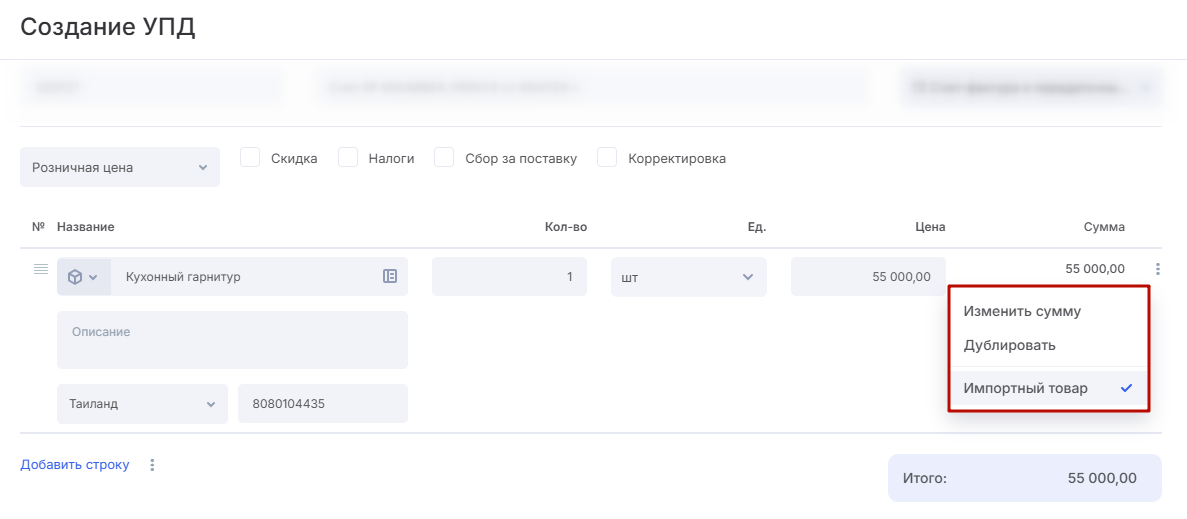 Соответствующие реквизиты также теперь можно проставлять в УПД. Так работать с ввозом товаров через Аспро.Cloud станет проще.