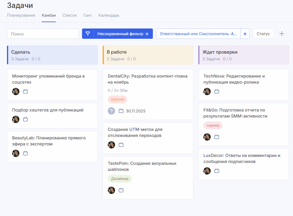 Функционал доступен в модулях «Задачи», «Проекты» и «Группы» — на всех тарифах.