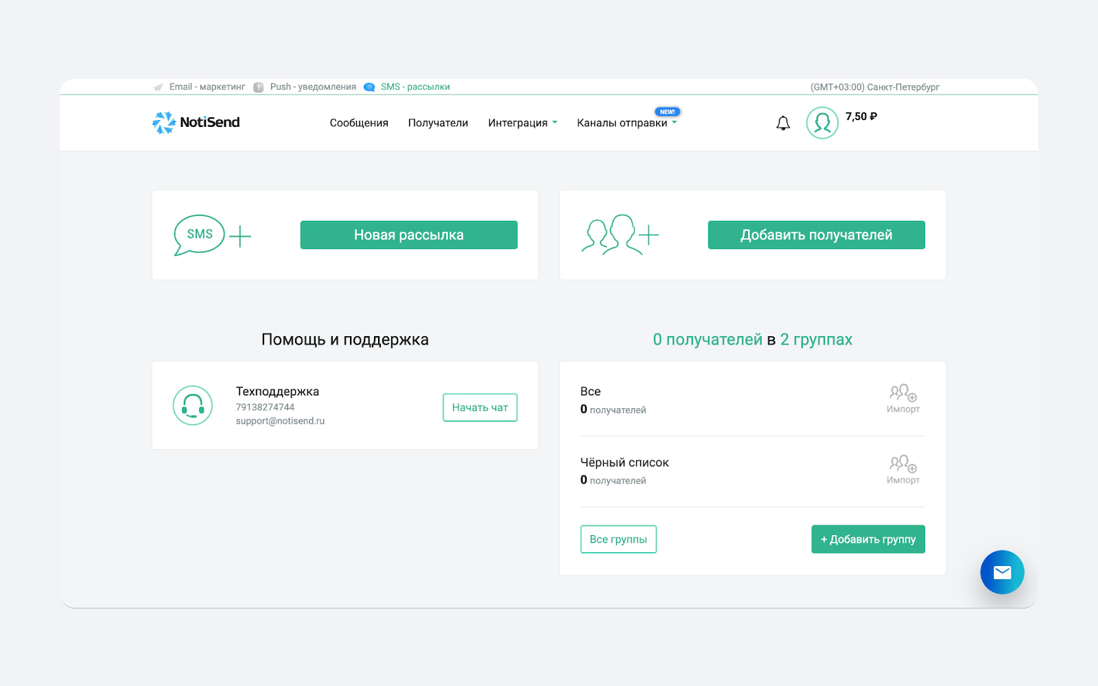 Notisend — это инструмент для рассылок через email и SMS. Можно создавать SMS-кампании, а также отслеживать статистику доставки сообщений.