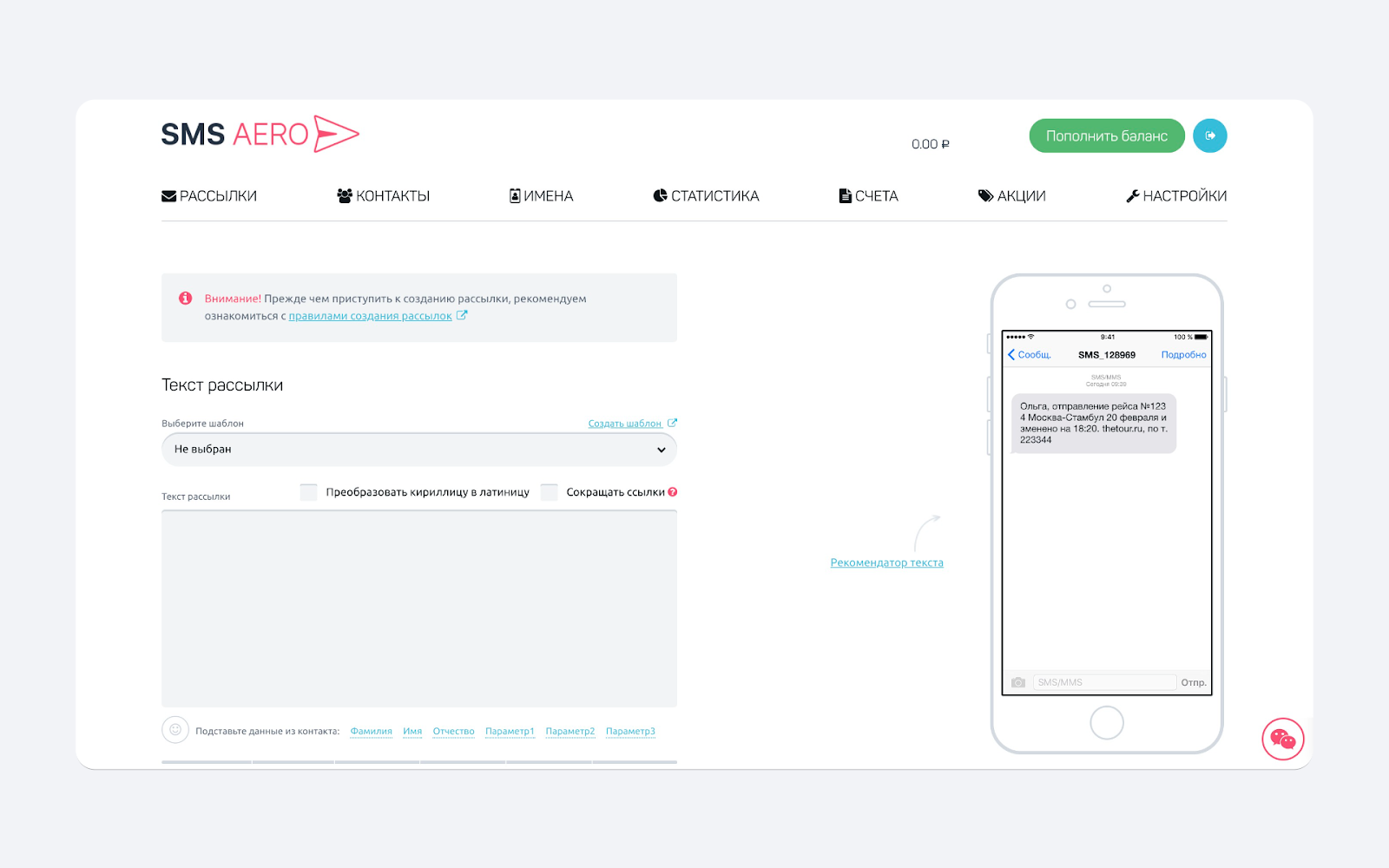 SMS Aero — интуитивно понятная платформа с разнообразием функций. Инструмент интегрируется с другими решениями. Комбинация API и SMPP позволят автоматизировать отправку SMS.