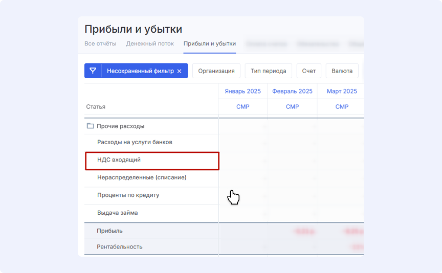 Также система автоматически выделяет НДС в отчетах. Так вы получаете более точные значения расходов и доходов компании, что позволяет принимать верные управленческие решения.