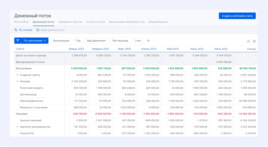 Мы постоянно отслеживаем и анализируем денежный поток и платежный календарь. Также используем отчет «Прибыль и убытки», но гораздо реже. Однако, он помогает нам структурировать данные. В ближайшее время хотим пересмотреть подход к финучету и использовать отчет чаще.