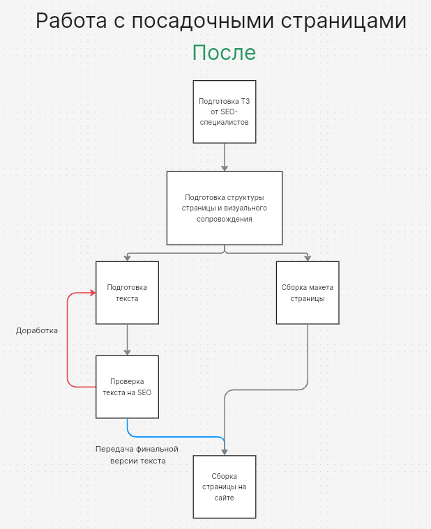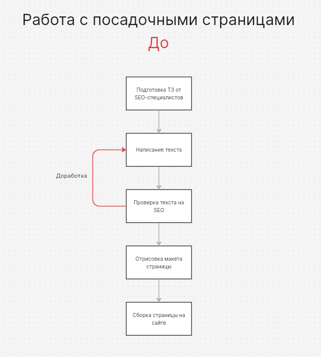 Мы перестроили последовательность работы. Раньше мы ждали ТЗ от специалистов, потом писали текст, а уже после этого ставили задачи на дизайн.
