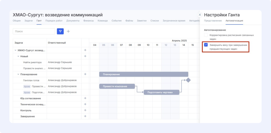 В проектах теперь доступна новая автоматизация: вехи могут сами закрываться после завершения всех предшествующих задач.