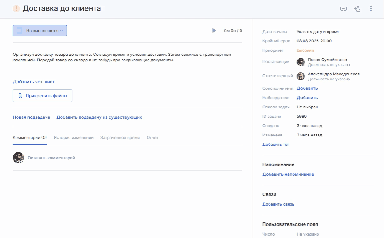 Несколько изменений претерпел таймлайн в модуле «Задачи»: