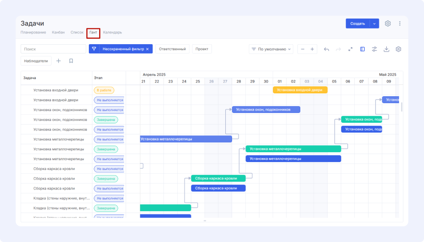 - экран «Таймлайн» в модуле «Задачи» теперь переименован в «Гант»;