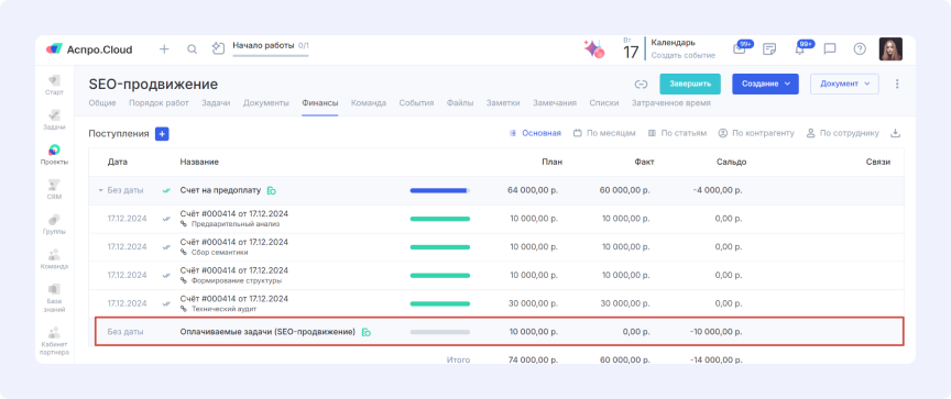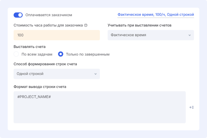 Благодаря этому вы сможете легко увидеть неоплаченные задачи и выставить счет. Этот подход позволяет работать и по частичной предоплате.