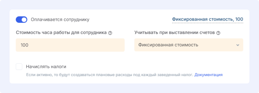 В разделе «Поступления» вы увидите, сколько должен заплатить заказчик. А в «Расходах» будет указана сумма для оплаты сотруднику. Стоимость может различаться, если у вас разная ставка за час для сотрудника и клиента.