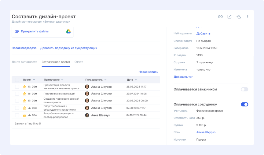 Если подсчитывать затраченное время в задачах и проектах вручную, можно легко допустить ошибки в начислениях. Особенно если нужно учитывать: