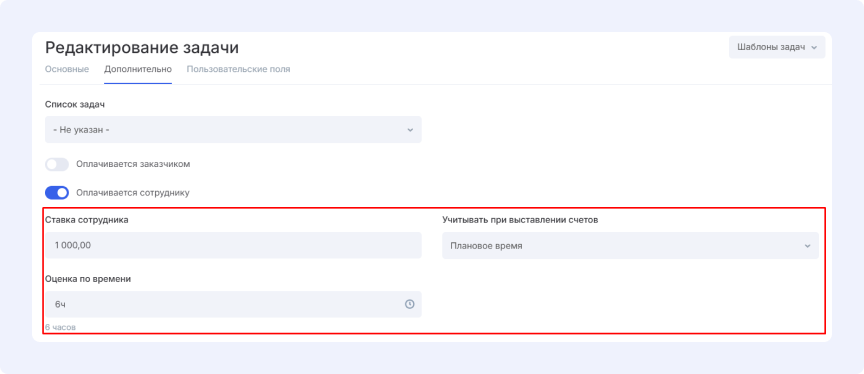 Но если задача новая или более сложная, вы также можете настроить другую ставку внутри нее.