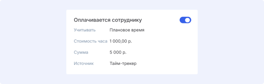 Сколько времени специалист потратил — столько и получит. От вас требуется установить ставку за час, а от сотрудника — фиксировать время работы с помощью встроенного тайм-трекера.