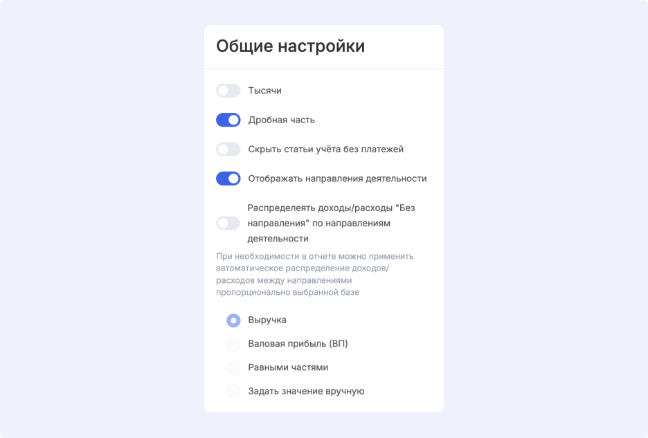 Метод ручного распределения расходов — это подход, при котором вы сами задаете, какой процент от общей суммы расходов должен быть отнесен к каждому направлению бизнеса. Это позволяет учитывать особенности каждого направления и гибко контролировать, как будут распределяться косвенные расходы.