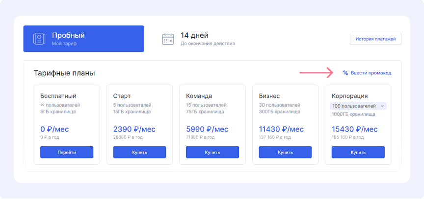 Для этого необходимо зарегистрироваться в Аспро.Cloud и ввести промокод при оплате тарифа.