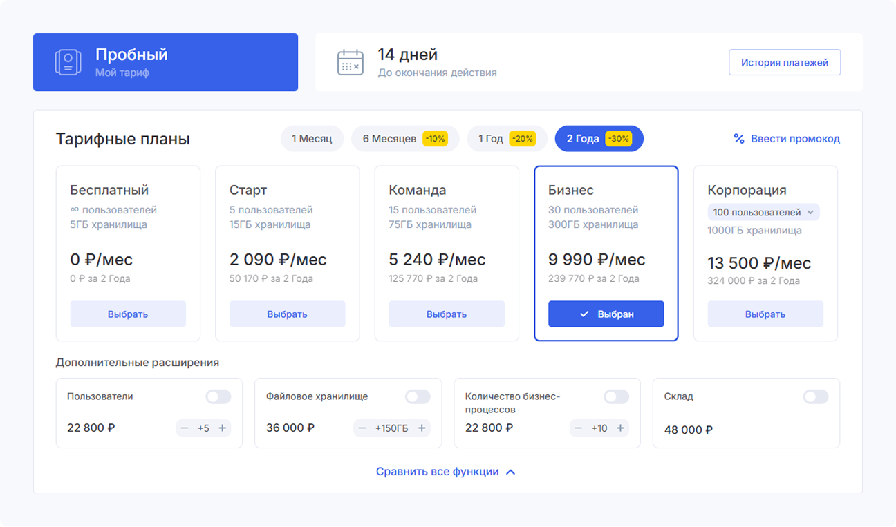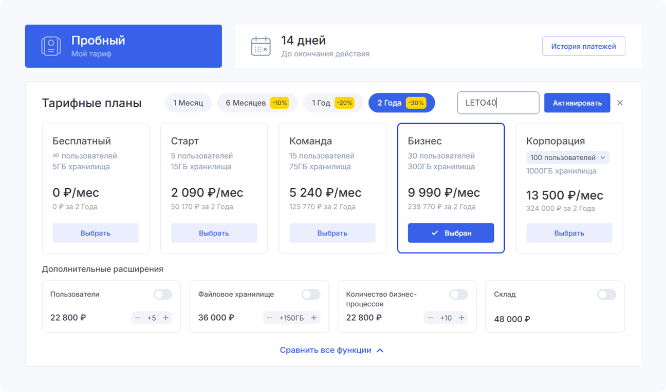 В акции участвуют тарифы «Команда», «Бизнес» и «Корпорация».