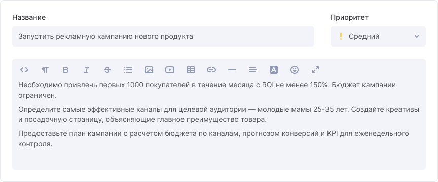 Мы полностью переработали текстовый редактор в Аспро.Cloud. Теперь работать с текстом стало проще и удобнее во всех ключевых модулях.
