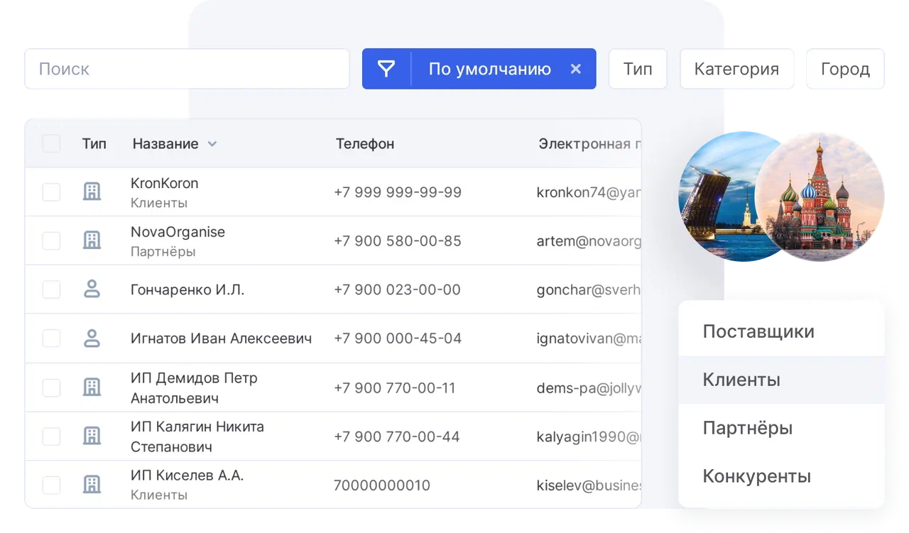 В CRM-системе можно настроить фильтрацию данных по клиентам. Выберите необходимые фильтры, чтобы быстро найти нужную информацию. Сегментируйте данные о клиентах по сфере деятельности, городу или задайте свои пользовательские поля. Упрощайте работу с заказчиками и повышайте эффективность взаимодействия совместно с инструментами Аспро.Cloud.