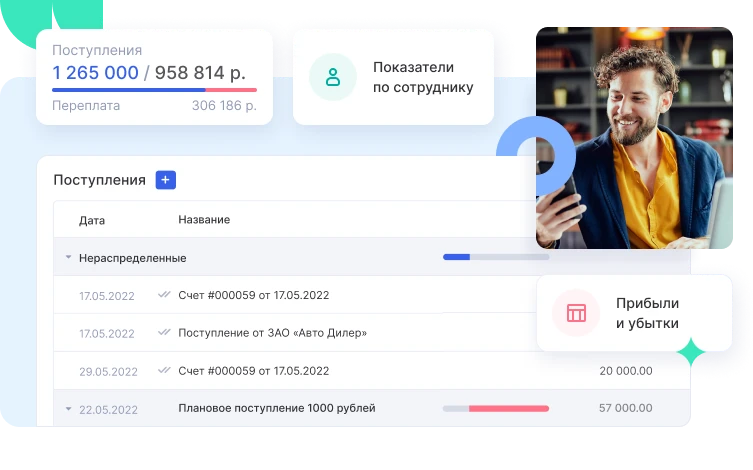 Оцените важный показатель продаж внутри проекта 一 его рентабельность. Добавьте расходы по статьям и все поступления, плановые или фактические. Система автоматически рассчитает прибыльность проекта и покажет, сработали ли вы эффективно. Оцените плановый и фактический денежный поток. Оптимизируйте расходы для повышения рентабельности будущих проектов.