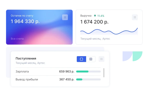 Отслеживайте изменения и остатки на счетах с помощью наглядных виджетов.