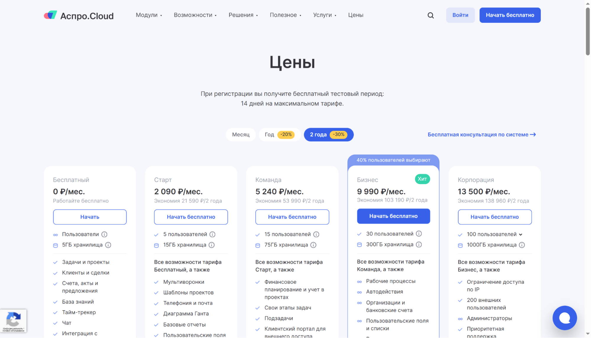 - Бесплатный тариф без ограничения пользователей. Подходит для старта, тестирования и полноценной работы малого бизнеса. При масштабировании можно перейти на платный тариф без потери данных.