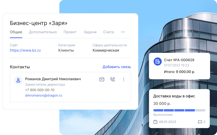 Если вы работаете с несколькими представителями одной компании, то в CRM-системе можно объединить контакты в одну карточку и указать должности сотрудников. Это упрощает коммуникацию с клиентами в b2b-сфере и позволяет быстрее реагировать на запросы.