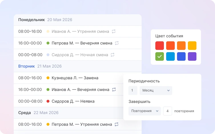 Также CRM позволяет формировать график водителей. Укажите даты смены, время начала и их длительность. Так курьеры всегда будут в курсе своего расписания, а вы сможете избежать пробелов и накладок в графике.