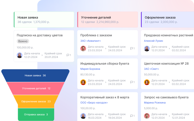 Ведение цветочного магазина — дело непростое. Здесь нужно не только успевать следить за ассортиментом, но и постоянно общаться с клиентами, управлять заказами, контролировать финансы и логистику. Поэтому CRM-система для цветочного бизнеса — это настоящая палочка-выручалочка. И раз вы здесь, то точно понимаете необходимость автоматизации цветочного бизнеса.