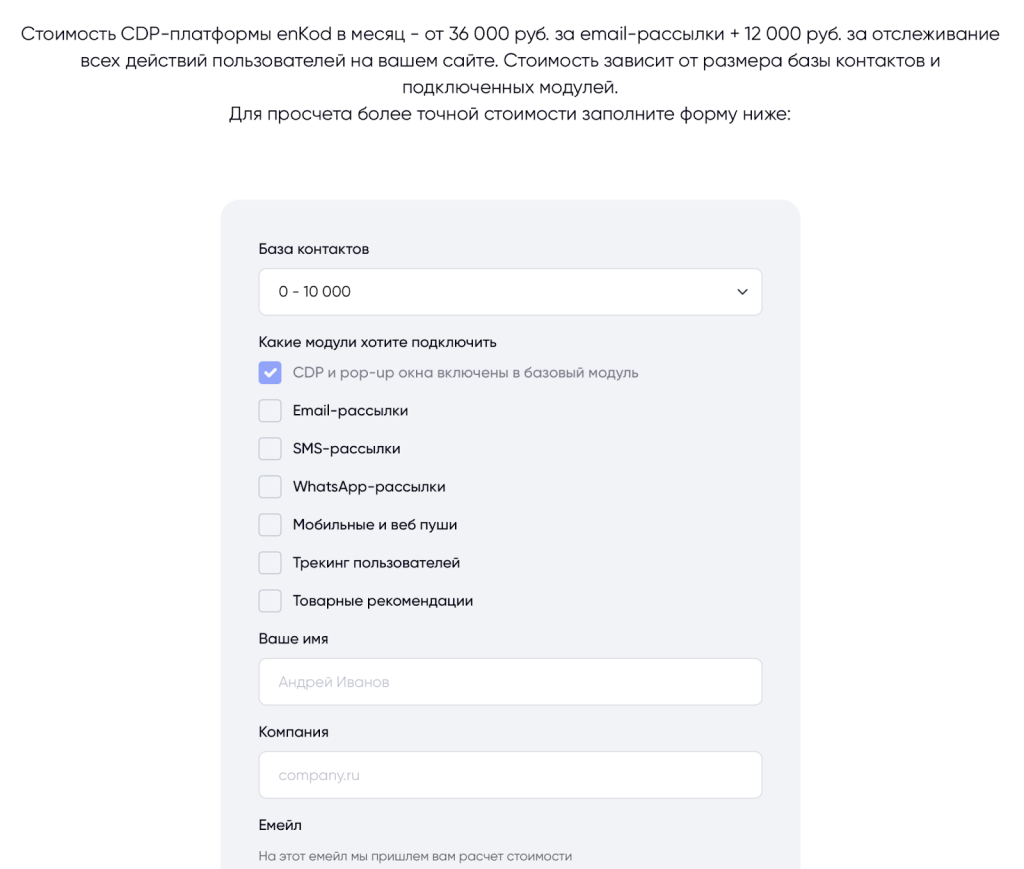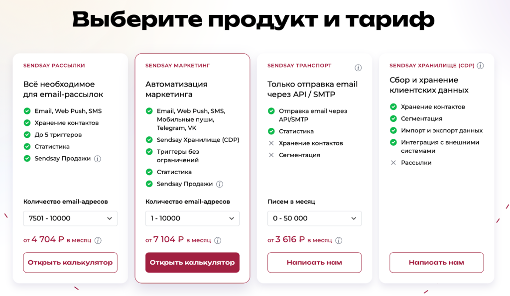 - Стоимость для базы 10 000 контактов начинается от 36 000 ₽/мес.