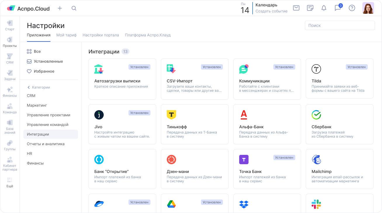 компаний используют Аспро.Cloud для ежедневной работы и ведения клиентов