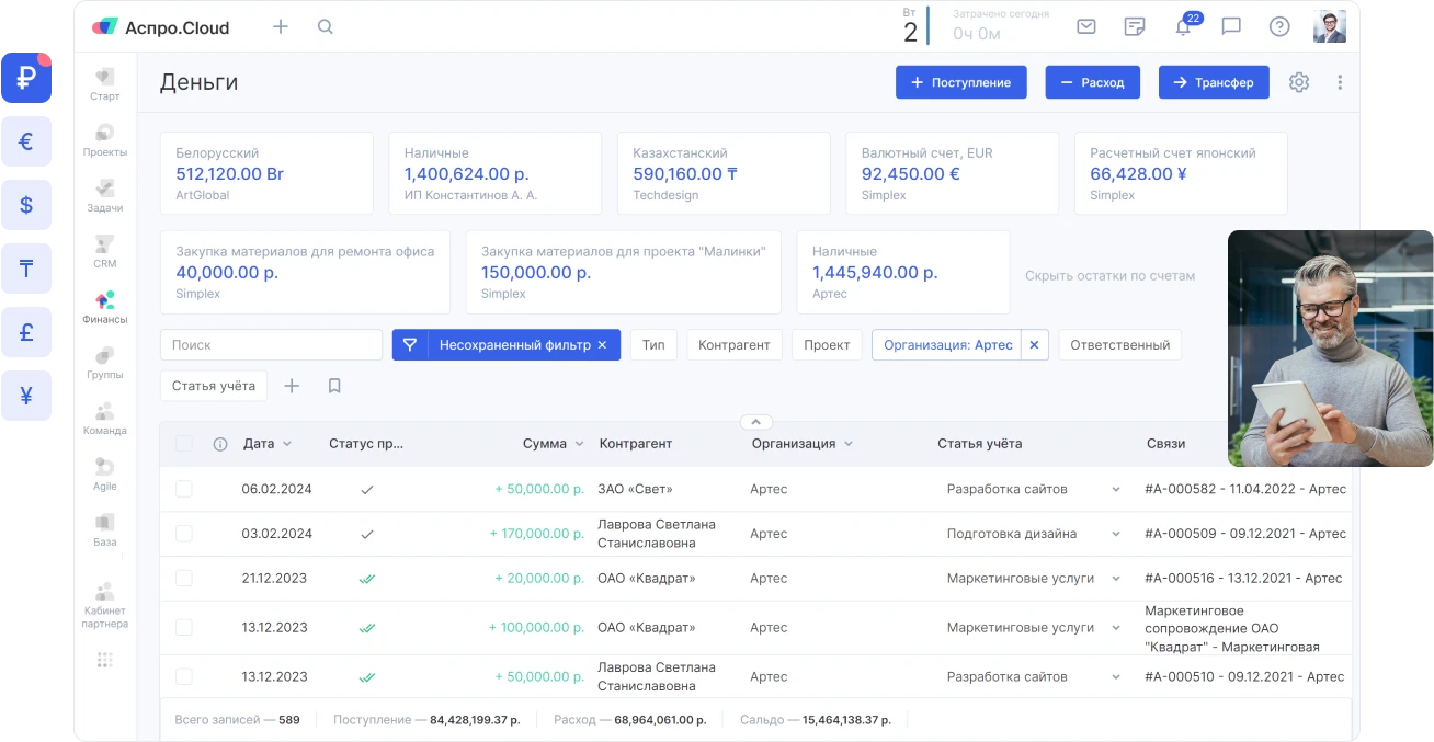 Чтобы проводить бюджетирование было проще, используйте системы для финансового учета. В этом видео мы расскажем, какие возможности и инструменты есть для этого в системе Аспро.Cloud.