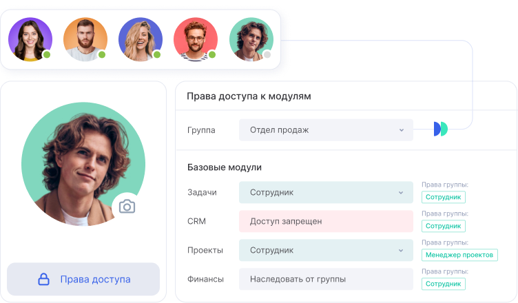 Благодаря разграничению прав доступа к управлению финансами, вы сможете делегировать работу по разнесению финансовых данных коллегам и не беспокоиться о конфиденциальности. Программа для контроля финансов Аспро.Cloud позволяет открыть доступ бухгалтерам и высшему менеджменту, чтобы они смогли видеть ситуацию и корректировать бизнес-стратегию.