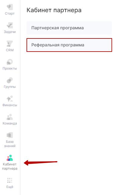 Чтобы попасть в партнерский кабинет, у вас должен быть установлен модуль «Кабинет партнера». Если вы это сделали, то перейдите в кабинет из меню и выберите «Реферальная программа».