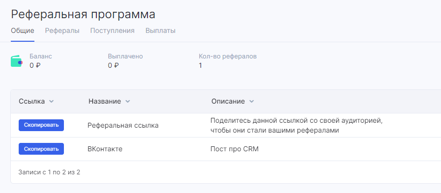 Там у вас уже сформирована реферальная ссылка. Нажмите кнопку «Скопировать» и поделитесь ей с потенциальным клиентом.