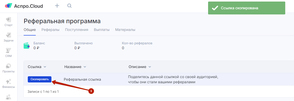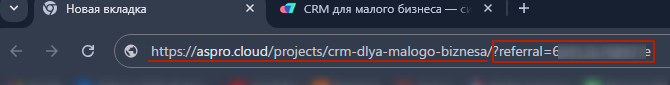 Реферальная программа Аспро.Cloud и Аспро.Финансы работает посредством реферальных ссылок. Создаете ссылку в партнерском кабинете и делитесь ею с потенциальными пользователями.