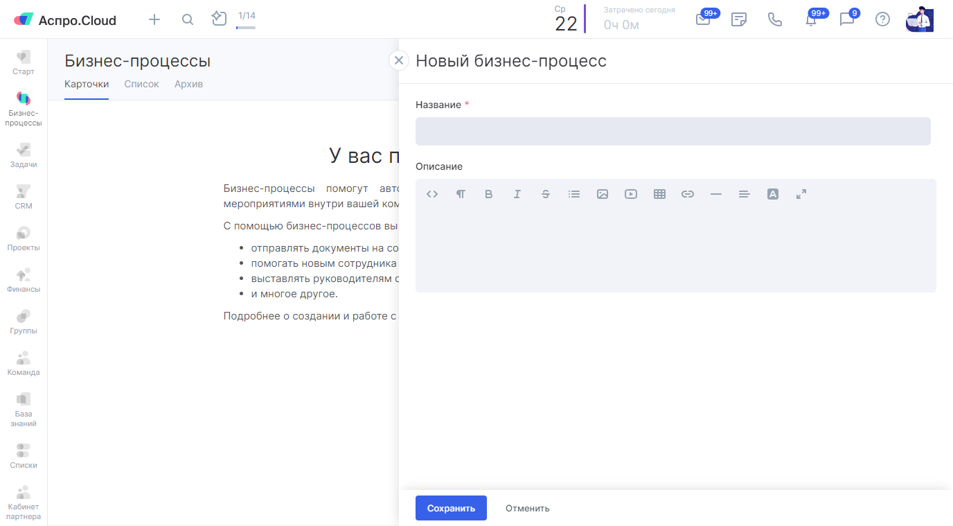 Как создать бизнес-процесс в Аспро.Cloud?