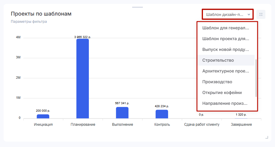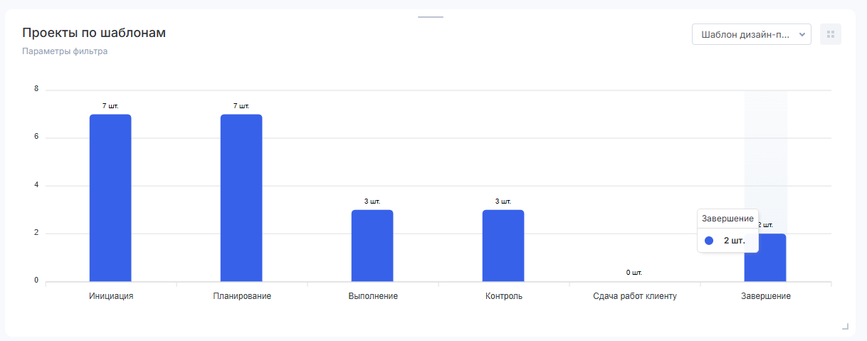 Через селектор в виджете вы также можете выбрать шаблон, с информацией о проектах по какому хотите ознакомиться.