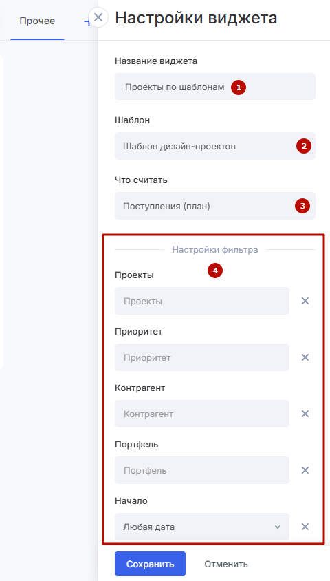 - Виджет: проекты по шаблонам