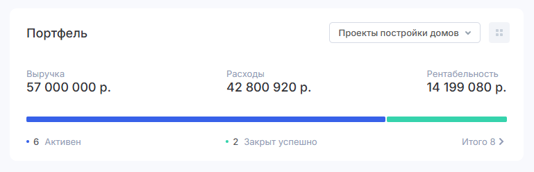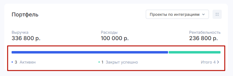 Через кнопку «Итого» вы также сможете открыть отфильтрованный список всех активных проектов в портфеле.