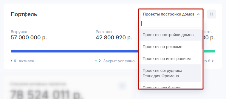 Выбрать нужный портфель проектов можно через селектор на самом виджете.