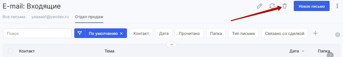 Чтобы удалить почтовый ящик из модуля, перейдите на его вкладку и нажмите на иконку удаления.