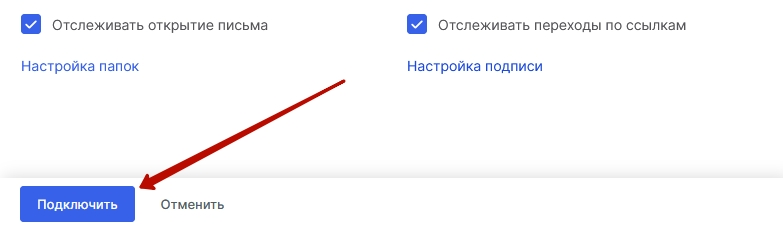Если отключение происходило через деактивацию приема писем — активируйте прием писем с помощью кнопки «Подключить» в нижней части панели: