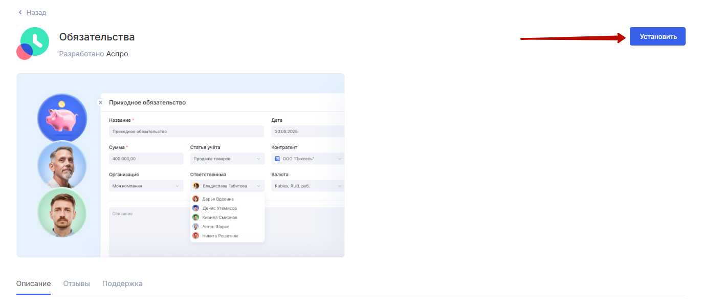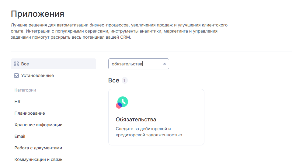 Модуль «Обязательства» устанавливается поверх модуля «Финансы».
