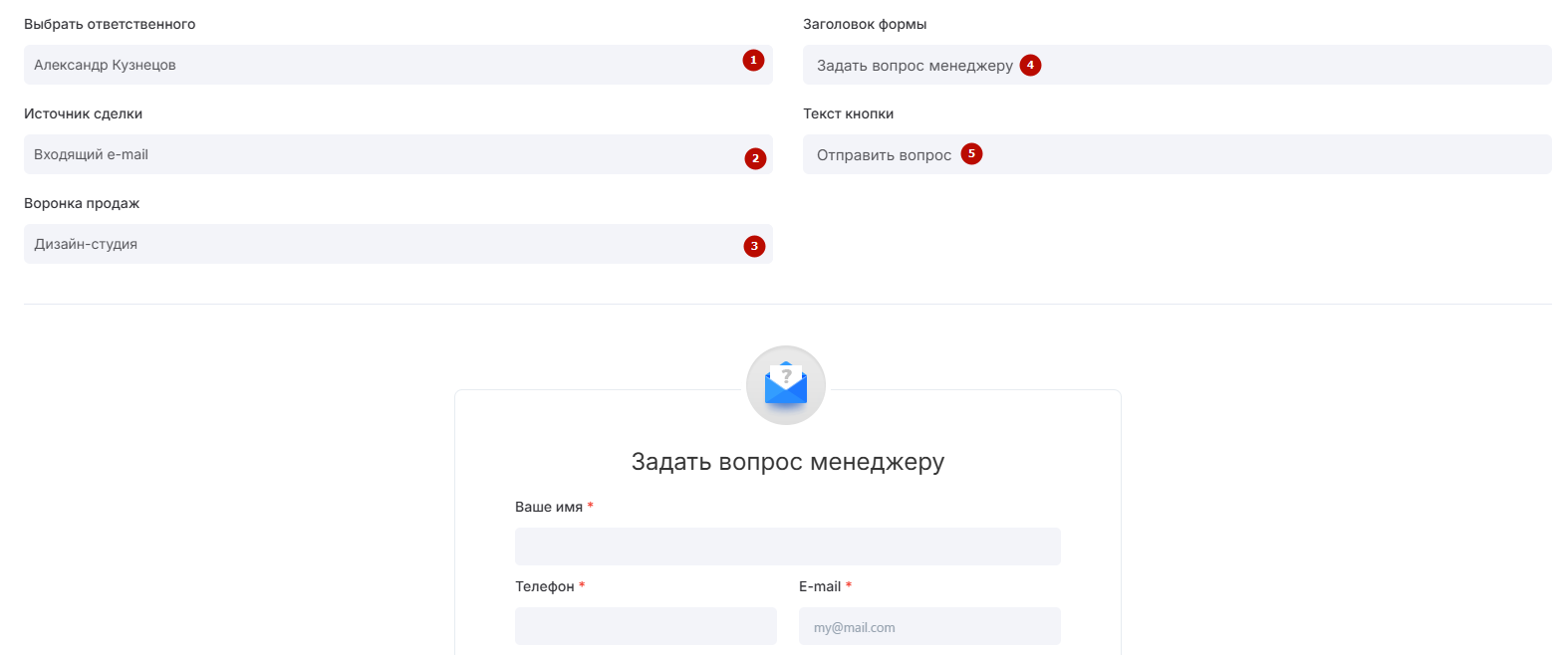 воронку продаж (3), в которой автоматически будут создаваться сделки с этой формы;