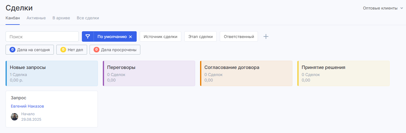 Сделка будет создана в воронке, которую вы выбрали в настройках почтового ящика в Аспро.Cloud.