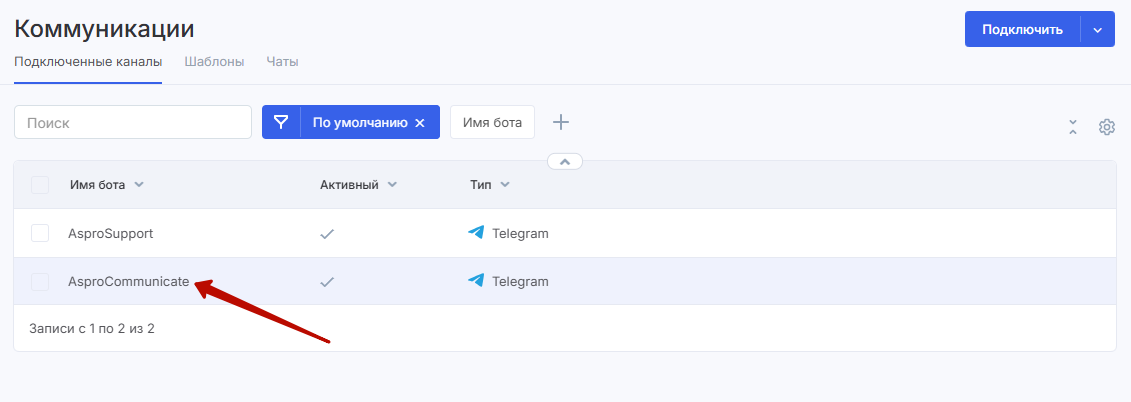 Перейдите в модуль «Коммуникации», выберите один из подключенных каналов и нажмите на него, либо начните подключать новый.