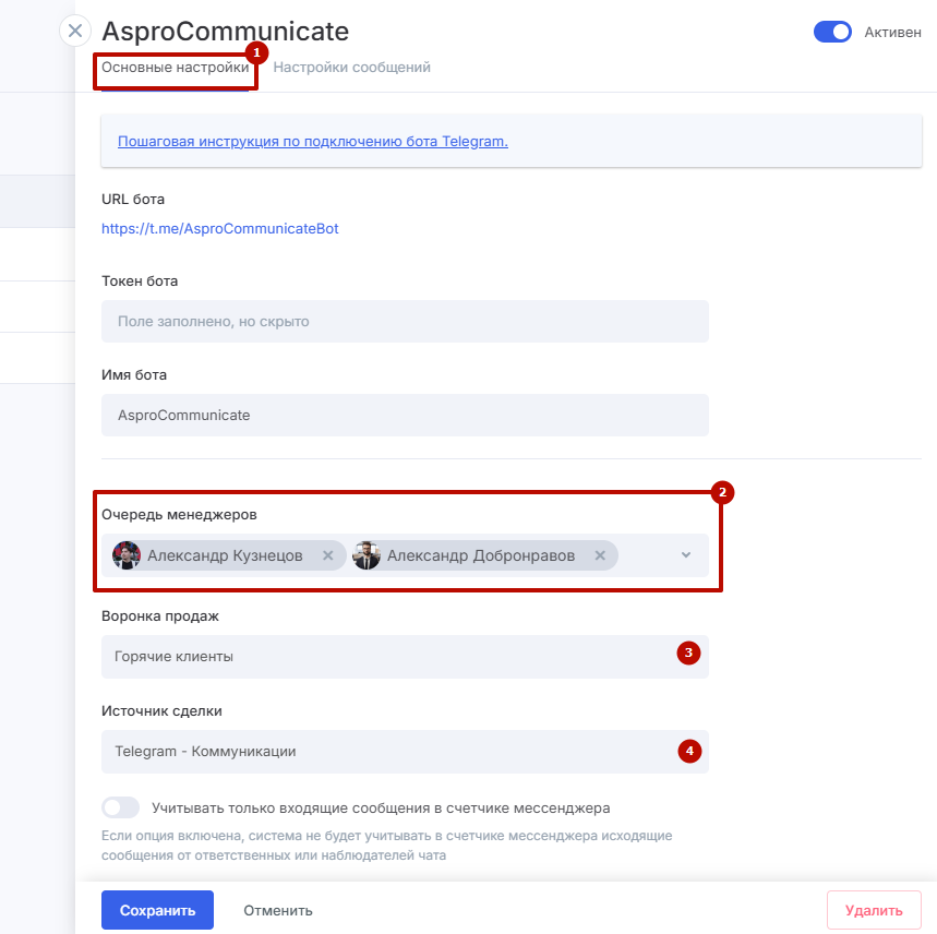 Важно: если сделки не появляются в системе, проверьте корректность выбранной воронки. Также проверьте подключение канала коммуникации.