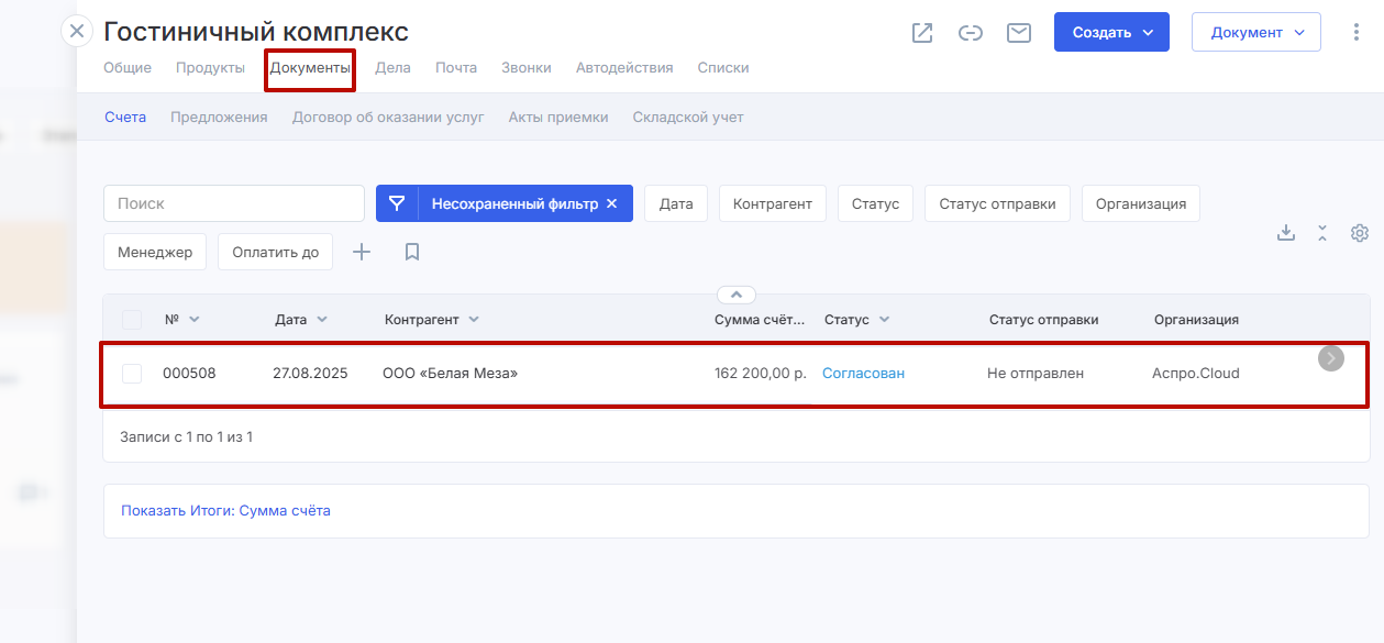 Найти созданный документ также можно в соответствующем подразделе во вкладке «Документы».