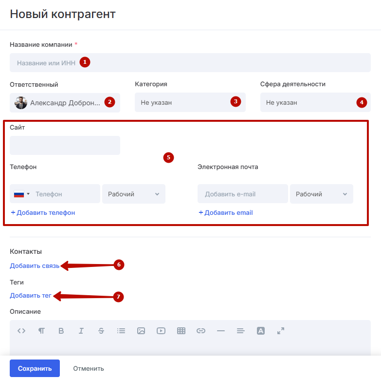 Создание и редактирование контрагента